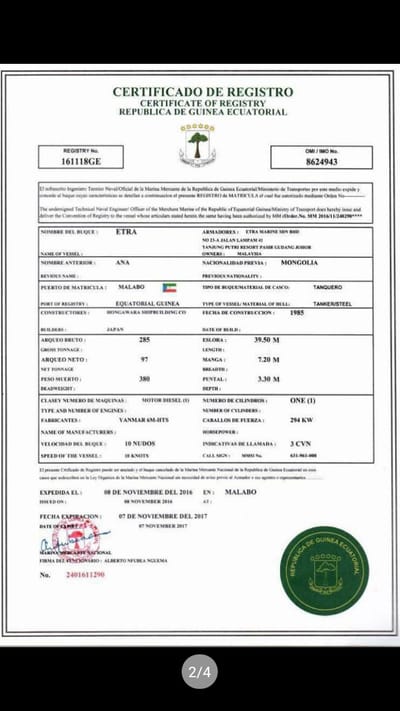 LOADING STORAGE CERTIFICATE